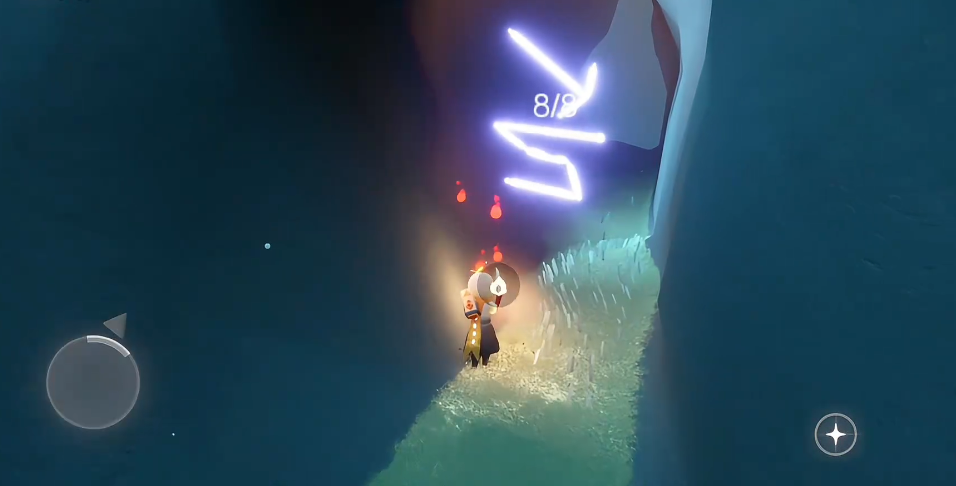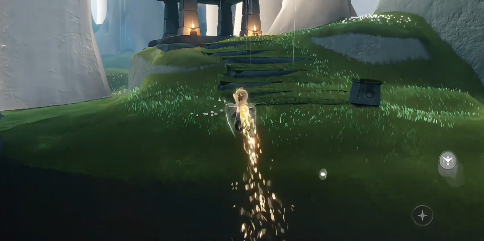 后山山体中藏有两处光之翼,一处在冷漠术士先祖所在平台左侧的洞穴入口处,洞穴内有三块明显的石头作为标记,进入洞穴后向深处飞行即可找到,洞穴光线较暗,提前点亮周围烛火能更清晰定位光之翼位置。另一处光之翼位于山坡右侧的凹陷平台处,从山顶向右侧低空飞行,穿过一小片黑暗植物即可看到,收集时需先烧掉周围的黑暗植物,避免被植物缠绕消耗能量。山坡上还分布着多处稳定烛火点,沿山体边缘、洞穴口、平台角落均有分布,烛火颗粒较小,需要仔细观察才能发现,沿山坡从下到上逐步收集,可高效获取大量烛火资源,适合日常跑图补充蜡烛库存。
