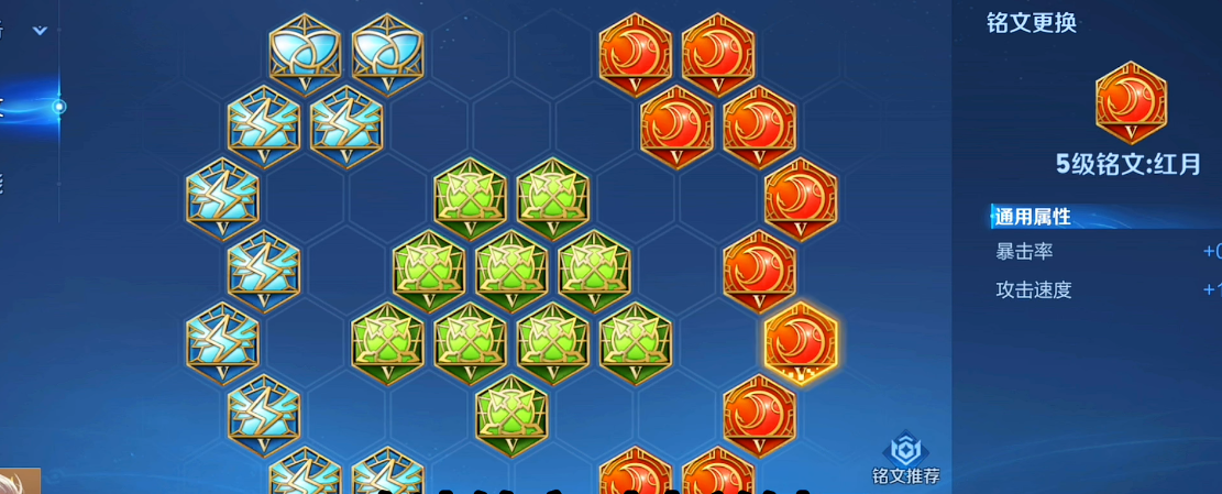 铭文属性可以和出装完美互补,7祸源搭配3无双可以稳定前期暴击概率,同时拉高后期暴击伤害,搭配无尽战刃可以把一枪秒人效果拉满,10鹰眼固定高额物理穿透,对线、打野、打前排都能稳定破甲,8夺萃带来高额吸血续航,线上不用频繁回城补给,发育节奏不会中断,2狩猎补足少量攻速与移速,让翻滚走位更加丝滑,走A手感更加流畅。面对多突进阵容的专属铭文,以物理穿透与坦度续航为主,前期抗压守塔能力更强,不容易被敌方打野频繁越塔针对,发育环境会更加安稳。