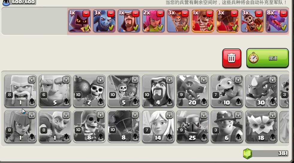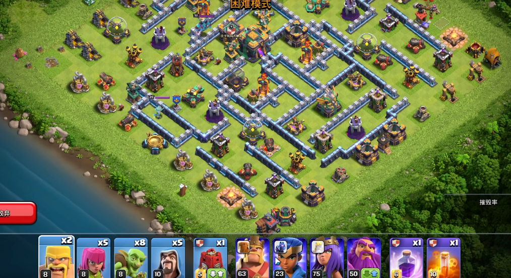 资源掠夺流派侧重低损耗、高效率,成员选择以高机动性、高伤害的轻量单位为主,优先针对资源建筑。超级哥布林是掠夺核心,自带隐身效果,对资源建筑伤害翻倍,搭配隐身法术可直接绕过防御直取资源库,通常配置15至20个超级哥布林,辅以少量弓箭手清理外围。矿工流适合稳定掠夺资源,24个矿工搭配10个野猪骑士,矿工可钻地无视城墙与陷阱,优先攻击资源建筑,野猪骑士能跳跃城墙,配合治疗法术持续续航,适合防御分散、资源库外置的阵型。这类流派法术以隐身、治疗、地震为主,地震法术破坏城墙分割防御,让掠夺单位快速渗透,整体配兵控制人口,减少训练成本,实现多次高效掠夺。