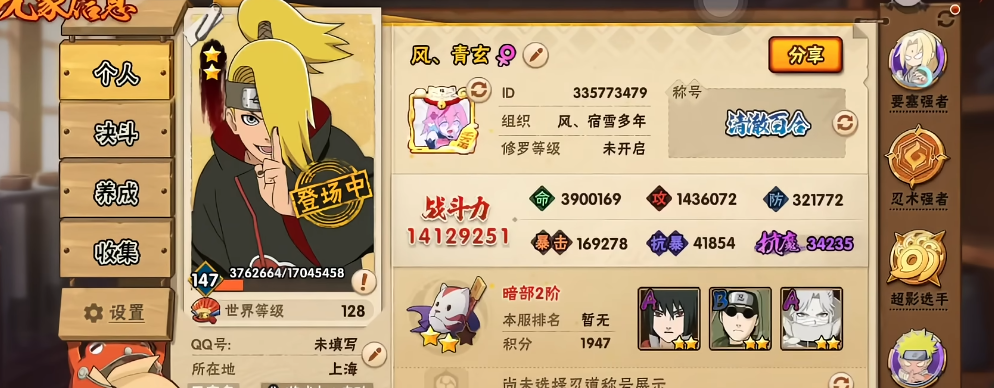 快速提升战力的关键在于合理分配时间和资源。每天坚持完成日常任务和丰饶之间的挑战,这是稳定获取铜币和声望的基础途径。重点培养通灵兽系统,将蛤蟆健升到满级后解锁乌鸦,能为全队提供5%暴击率加成,搭配宇智波鼬这类忍者效果显著。
