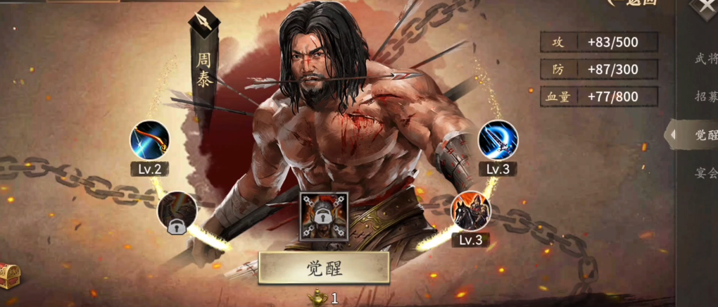 夏侯惇觉醒需周瑜先行觉醒,且自身达到紫将120级条件。觉醒后战法升级为山崩地裂,10回合内交替造成固定伤害与减速效果。每次攻击可叠加5层攻防增益,但需注意携带战车会导致增益失效。联合觉醒方面,与夏侯渊组队可激活额外属性加成,副将选择以诸葛亮等辅助型武将优先。