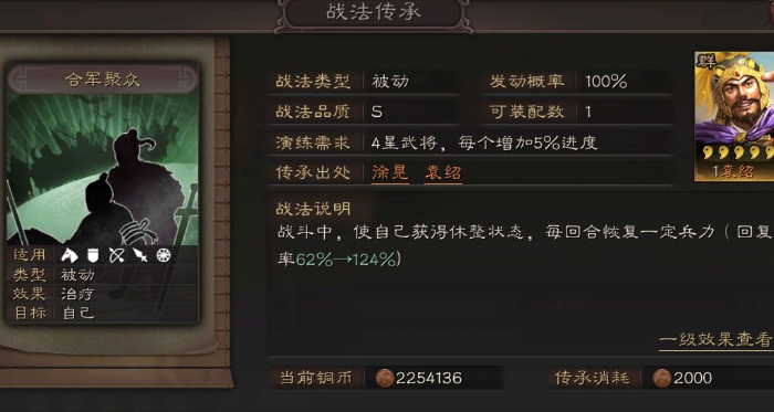 光挨打不补血可不行,再硬的汉子也扛不住车轮战。给老夏侯配上能回血的战法,那是保命续航的根基。S级的合军聚众挺稳当,每回合都能慢慢回点血,A级的自愈也不错,算是经济实惠的选择。要是你还在开荒阶段打基础,鲁莽这招值得考虑,它不但能解掉那些烦人的禁疗状态,还能让你揍人的时候吸点血回来,对单打独斗那会儿特别有用。这些回血本事,能保证你这位老将在场上站得更久,多扛几下,自然就有更多机会抡起大刀砍回去。
