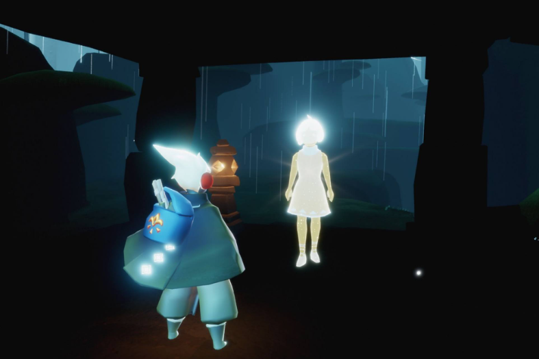 你得去雨林的密林遗迹地图找捉迷藏先祖。到达那里后,一直向前飞,你会看到一个桥,在桥的右前方有个小洞口,里面有小螃蟹。勇敢地钻进去,一直走到最深处,就能发现捉迷藏先祖的身影。点亮他并帮他重回天际,这样他就被永久解锁了。这个步骤是基础,完成后才能在后续兑换面具。