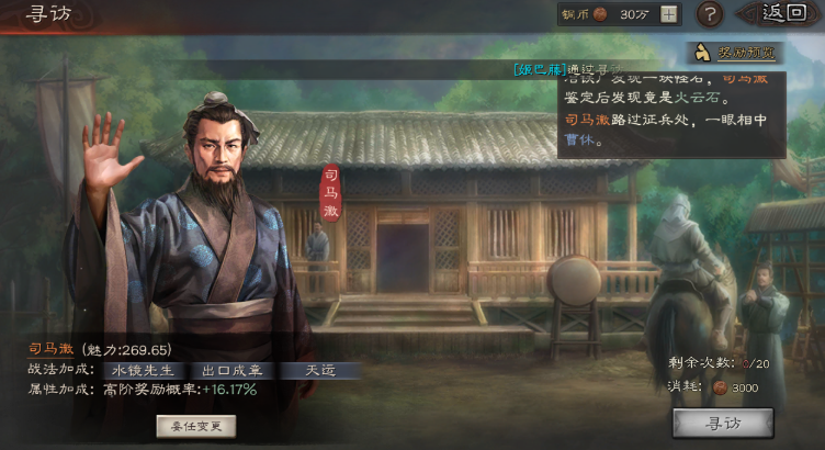 提升寻访到橙将的机会,咱们得先选对寻访官。司马徽绝对是首选,他的专属战法能让高阶奖励的几率额外提升一大截,理论上是效果最好的。如果暂时没有司马徽,小乔、甄姬、刘备这些本身魅力值就很高的武将也是不错的选择,毕竟魅力值高低直接关系到寻访出好东西的概率。咱们选人最核心的原则就是看魅力,这是基础。