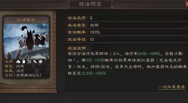 刘备作为主将的代表性选择,凭借自带战法仁德载世的稳定治疗和虚弱效果,成为许多阵容的核心辅助。他的优势在于治疗每回合为队友提供续航,并有概率虚弱敌方目标,主将时虚弱概率更高,这能显著提升队伍持久战能力;搭配陷阵营或暂避其锋等战法,可进一步强化减伤和生存。刘备的兵种适应性优秀,骑盾S级、弓枪A级,让他能无缝融入桃园盾等经典阵容,与关羽张飞配合形成攻守兼备体系,或在西风骑中担任支持角色,通过飞熊军增强全队治疗和主将输出。这种多功能性使刘备在开荒和后期战斗中表现突出,适合平民玩家追求性价比。