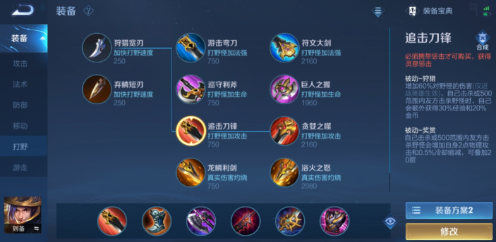 开局阶段,优先合成二级打野刀如贪婪之噬和急速战靴,这能显著提升清野速度和移动灵活性,为前期gank奠定基础。暗影战斧作为核心装备之一,提供物理攻击、冷却缩减和护甲穿透,其被动减速效果增强了对拼时的控制力,完美适配刘备的技能联动需求。末世则不可或缺,其百分比生命值伤害和吸血属性大幅提升持续输出与续航能力,尤其在面对坦克英雄时效果显著。宗师之力的强击被动进一步放大技能后的普攻爆发,使刘备在中期能快速秒杀目标。