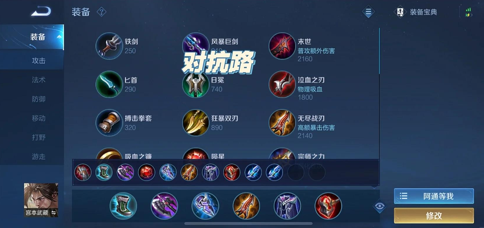 王者荣耀宫本对抗路怎么出装