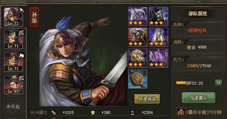 装备这块别太焦虑,紫装混搭红装完全够用,技能等级能洗到333或者443就很不错了。重点是把孙策的防御堆上去,让他能多扛几下,最好带点强防属性;甘宁得穿高勇装备,比如将军令或者夜光杯这类,提升挡战法的概率,这是他吃饭的本钱;夏侯渊的装备侧重强攻和山地适应性,让他在山地砍得更狠;徐晃最后出场,保证血量健康就行,输出装优先。兵器等级尽量往36/32/29这个方向靠,能显著提高成功率,实在达不到也别太纠结,多试几次。