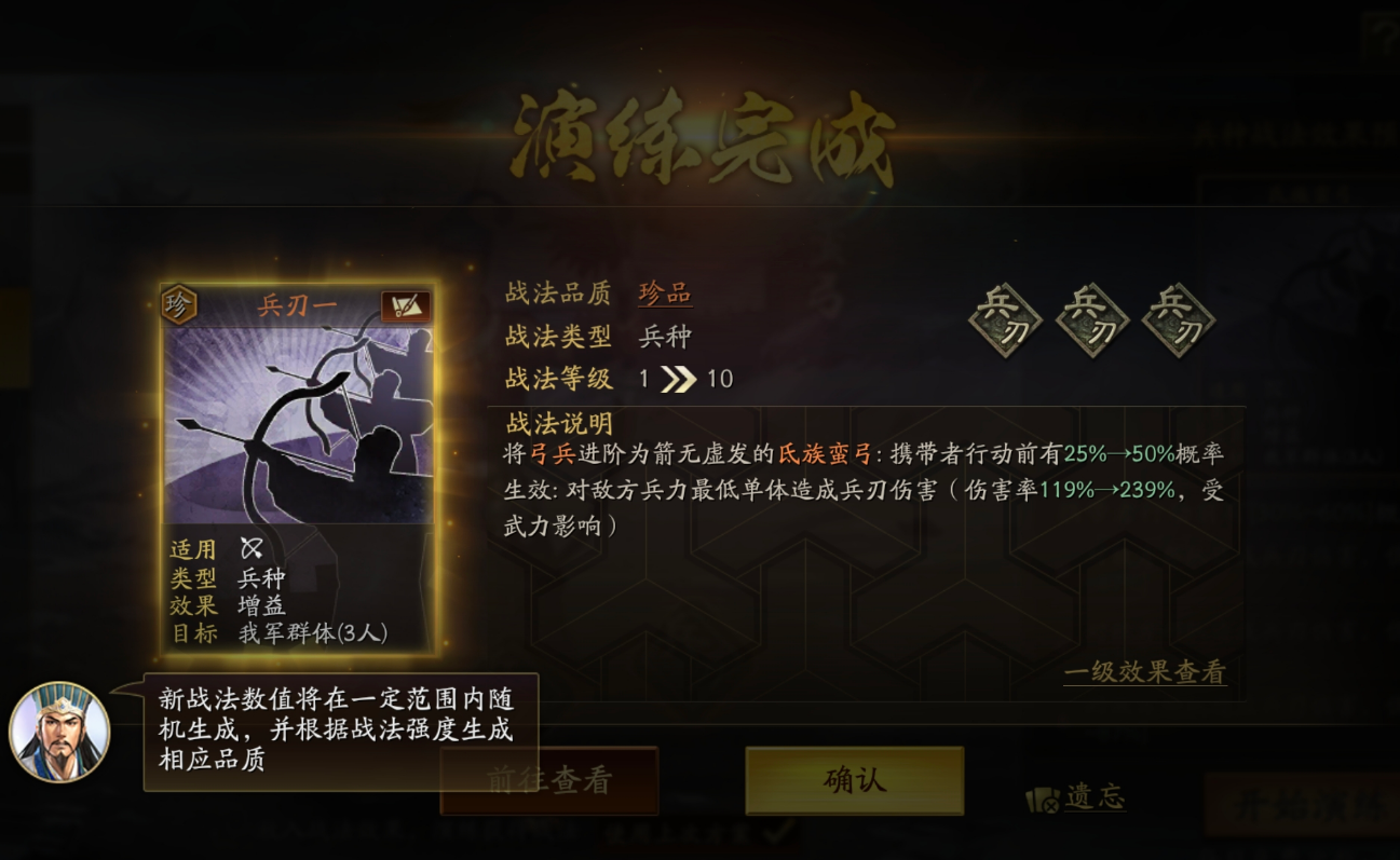 演练是解锁传承战法实战能力的必经步骤。获得战法卷轴后,需在战法-演练界面中投入指定品质的武将卡牌作为演练素材,以提升该战法的领悟进度直至100%。演练的资源消耗规则明确:B级战法需消耗三星武将进行演练,而A级与S级战法则必须消耗四星武将。演练进度满额后,该战法方正式解锁,可被配置至其他武将的战法栏位中。此过程需消耗大量武将卡牌资源,强调资源规划的重要性,避免因盲目演练导致关键素材短缺。