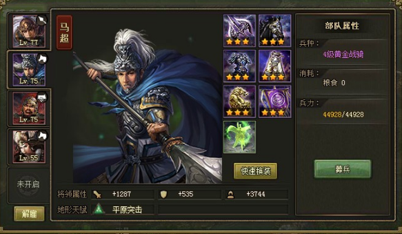 招募西凉猛将马超可是咱们提升战力的关键一步,这位紫将的统率和勇武在前期绝对算得上顶尖。想把他收入麾下,得先做好几件硬性准备:角色等级必须冲到76级,主力武将们也得练到70级手里的兵器至少50级,装备技能最好都升到4级往上。同时别忘了囤点家底,粮食、镔铁这些资源副本里消耗很大,日常的政务事件和祭祀活动多参与,把仓库塞满才安心。