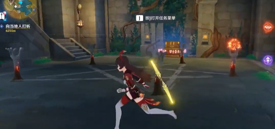 大门打开后,旅行者会面对第一项挑战——点燃遗迹外特定的石柱装置。这些石柱需要按照正确的顺序激活才能解锁通路。根据解密规律,旅行者需要用火元素角色,从右边开始,依次点燃这些石柱。点燃其中一个可能会影响对角位置石柱的状态,所以观察石柱间的联动关系很重要,务必耐心尝试正确的点火序列。完成这一步,通往遗迹内部的道路就畅通无阻了。
