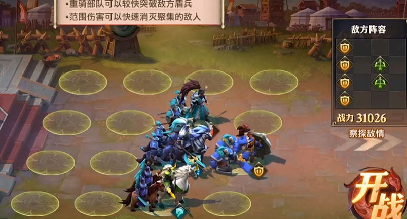 布阵篇的核心在于合理利用兵种特性和站位策略,以最大化战场优势。游戏中的六种兵种各具特色:盾兵、步兵、轻骑、重骑、弓手和谋士,它们相互克制且特性多样,直接影响战斗结果。玩家需在布阵阶段仔细分配位置,避免兵种浪费或无效部署。盾兵作为前排主力能吸收大量伤害,而步兵和轻骑则需配合其他单位激发潜能。合理的布阵不仅能提升攻击效率,还能削弱敌方攻势,是整个战役成功的关键起点。