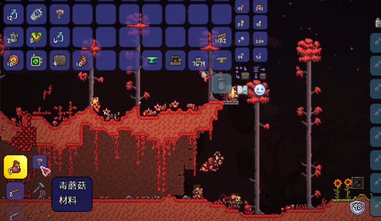 要开始合成,你先得获取邪恶蘑菇,这材料在腐化之地或猩红之地的地表区域随处可见。你只需要带上你的工具或武器,去那里探索一下,就能轻松采集到这些蘑菇。腐化之地通常有深紫色的背景和独特的敌怪,猩红之地则是血腥红色的环境,在这些地方的地表草丛中,邪恶蘑菇会自然生长出来。收集时,你可以用任何工具挖取,一次就能拿到多个,建议你多收集一些备用,因为合成邪恶粉末时可能需要不少蘑菇。