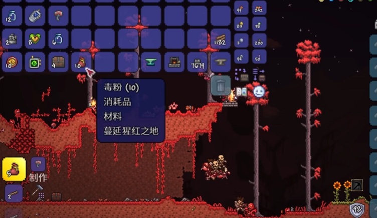 合成邪恶粉末时,你只需要站在放置好的空瓶子旁,打开工作界面,然后把邪恶蘑菇放进去。一个邪恶蘑菇通常能制作出五份邪恶粉末,所以如果你收集了足够的蘑菇,就能批量产出。邪恶粉末的主要用途是转化地形,比如撒在普通蘑菇或草地上,能慢慢把区域变成腐化或猩红环境,这样更容易遇到特定敌怪。整个过程很直观,你可以随时重复制作,不需要额外工具或特殊条件。如果游戏中遇到血月事件,树妖可能会出售邪恶粉末,但合成法更可靠也更常用。