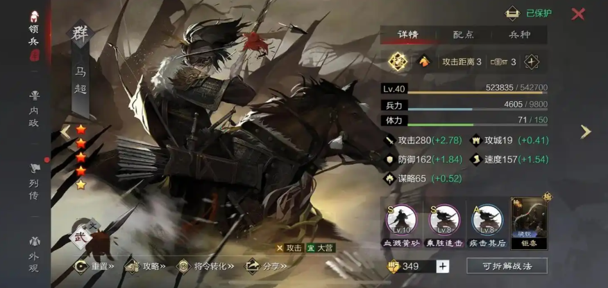 张辽和马超都是备受玩家青睐的强力武将,但他们的定位和适用场景截然不同,选择的关键在于你当前阵容的短板和发展阶段。张辽的核心价值在于其疾如风这个战法的强大辅助能力,能为全队提供速度加成和高概率连击效果,是构建前三回合速攻体系的核心组件;而马超则是天生的主C输出手,凭借血溅黄砂这个被动技能的超高普攻伤害加成,成为队伍中稳定的物理输出核心。这两位武将虽然都属于菜刀体系,但一个偏向团队增益,一个专精个人输出,正好形成了互补关系,理解这种差异才能做出最合适的选择。