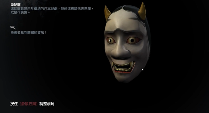 在沿岸森林区域,玩家可以找到多种遗物,包括般若之面、女能面和鬼能面,这些物品不仅丰富了游戏背景故事,还能通过旋转视角获取隐藏信息和额外经验值,增强角色能力。遗物通常隐藏在特定场景中,需要仔细探索环境,利用攀爬和工具技能来获取,例如般若之面需要通过解谜进入小木屋内的储藏室,而女能面则位于木拱桥下的尸体旁。