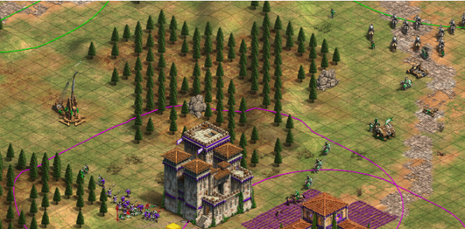 游戏开始时,你得赶紧建造城镇中心来生产村民,这是资源收集的基石,同时优先升级科技来提升效率。 早期重点放在食物和木材上,比如多派村民去采果子或伐木,为封建时代做准备。一旦进入封建时代,立刻建造兵营训练掷矛手,这是拜占庭的标志性兵种,便宜又实用,能有效抵挡敌人的骚扰。 别忘了建个市场,通过贸易来平衡资源,避免金矿或石头短缺。 这个阶段的核心是苟,别主动开战,用城墙或塔楼保护好你的基地,积累足够资源才是王道。