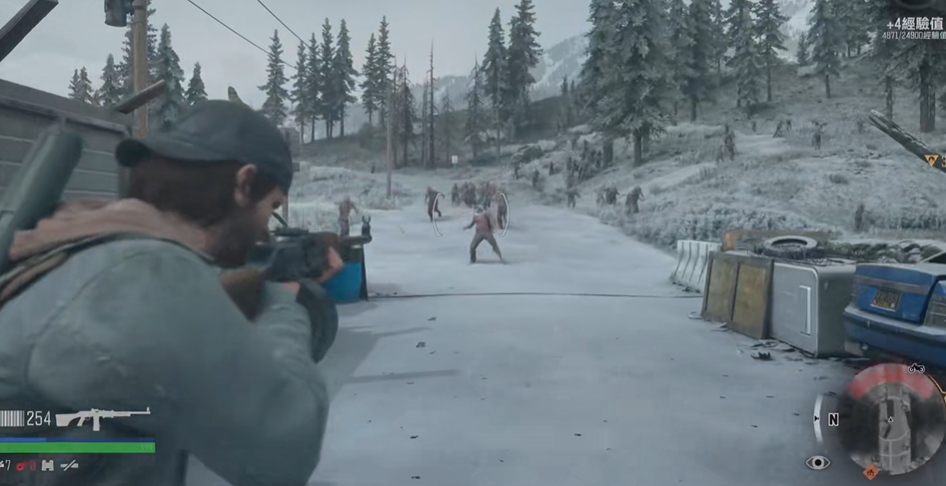 当你在屋顶站不住了或者弹药快见底,就得转入地面游击战。撒开腿跑起来,带着尸潮大部队绕圈子,特别是把它们往你之前设好陷阱的地方引,或者引到锯木厂旁边那个大坝上。大坝那条路窄,僵尸没法一窝蜂冲过来,队伍会被拉长,这时候回头用机枪扫或者扔炸弹,效率会高很多。边跑边留意武器轮盘,主武器子弹打光了立刻切出备用的枪或者捡地上敌人掉的武器接着打,同时随时注意近战武器的损耗情况,发现快坏了就赶紧用废铁修一下,别等断了手忙脚乱。
