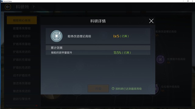 舰船装配中的运算力和功率增强是必须优先点到3级的项目,这直接决定了你能装备什么级别的武器和组件。护盾抗性基础科技也要同步跟进,特别是热抗和动能抗性,因为天启舰船的默认抗性分布在这两项上较弱。别急着点高级武器科技,先保证舰船能在任务中站得住脚。